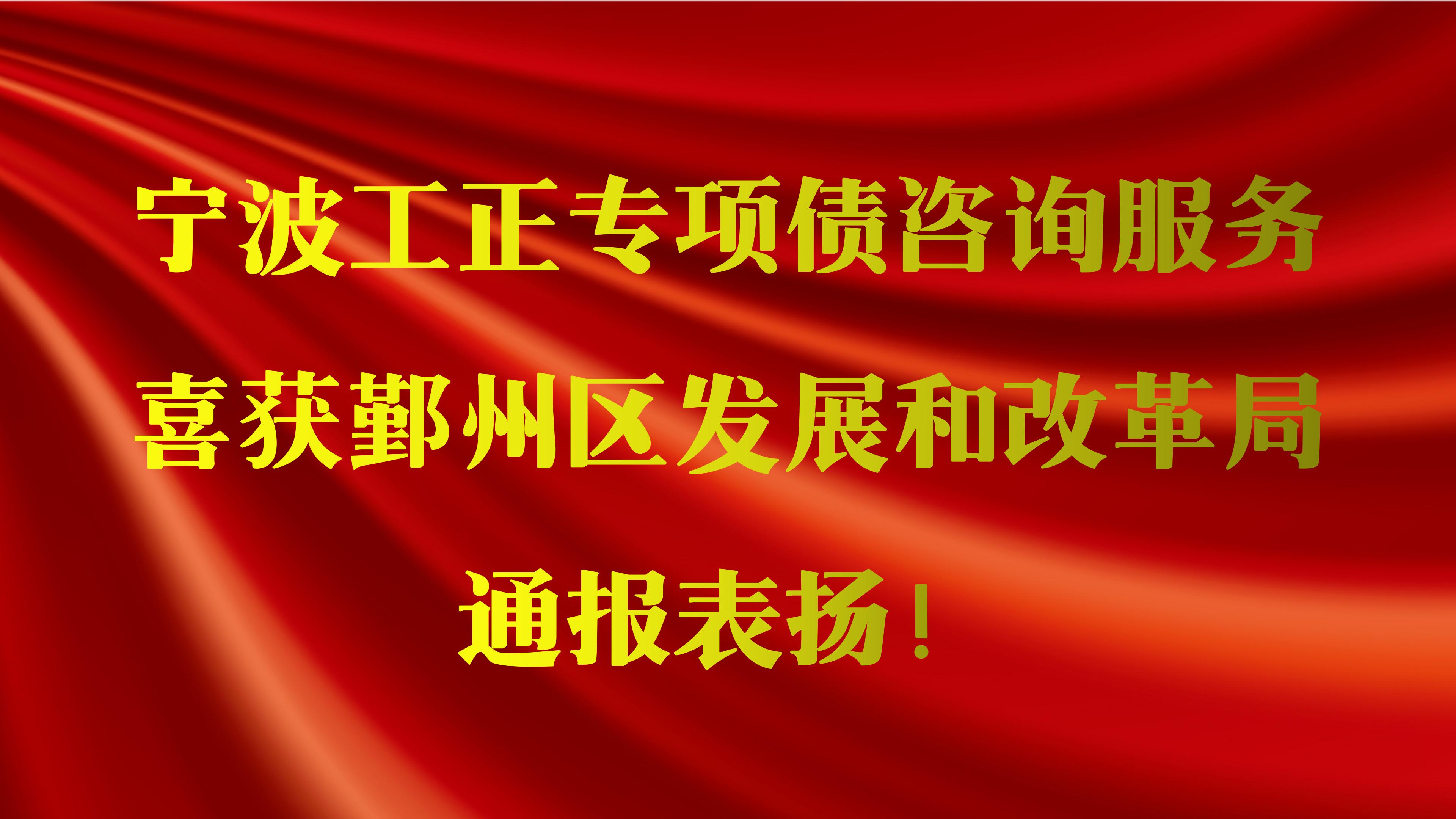 喜報 | 寧波工正專項債咨詢服務喜獲鄞州區(qū)發(fā)展和改革局通報表揚!